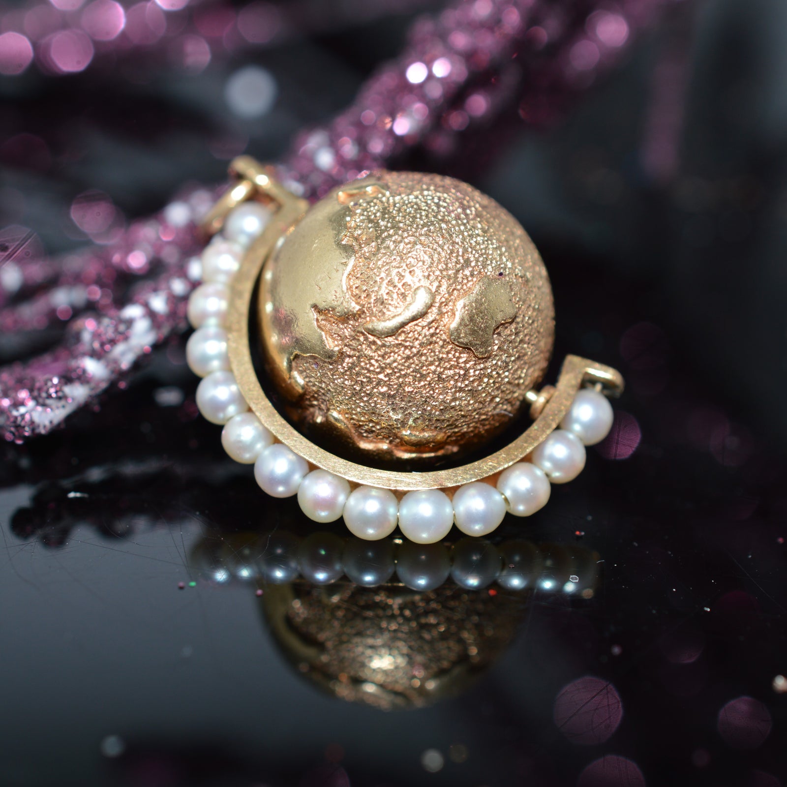 $1,650.00 USD14K Yellow Gold Vintage Spinning Globe Charm With 14 Pearls