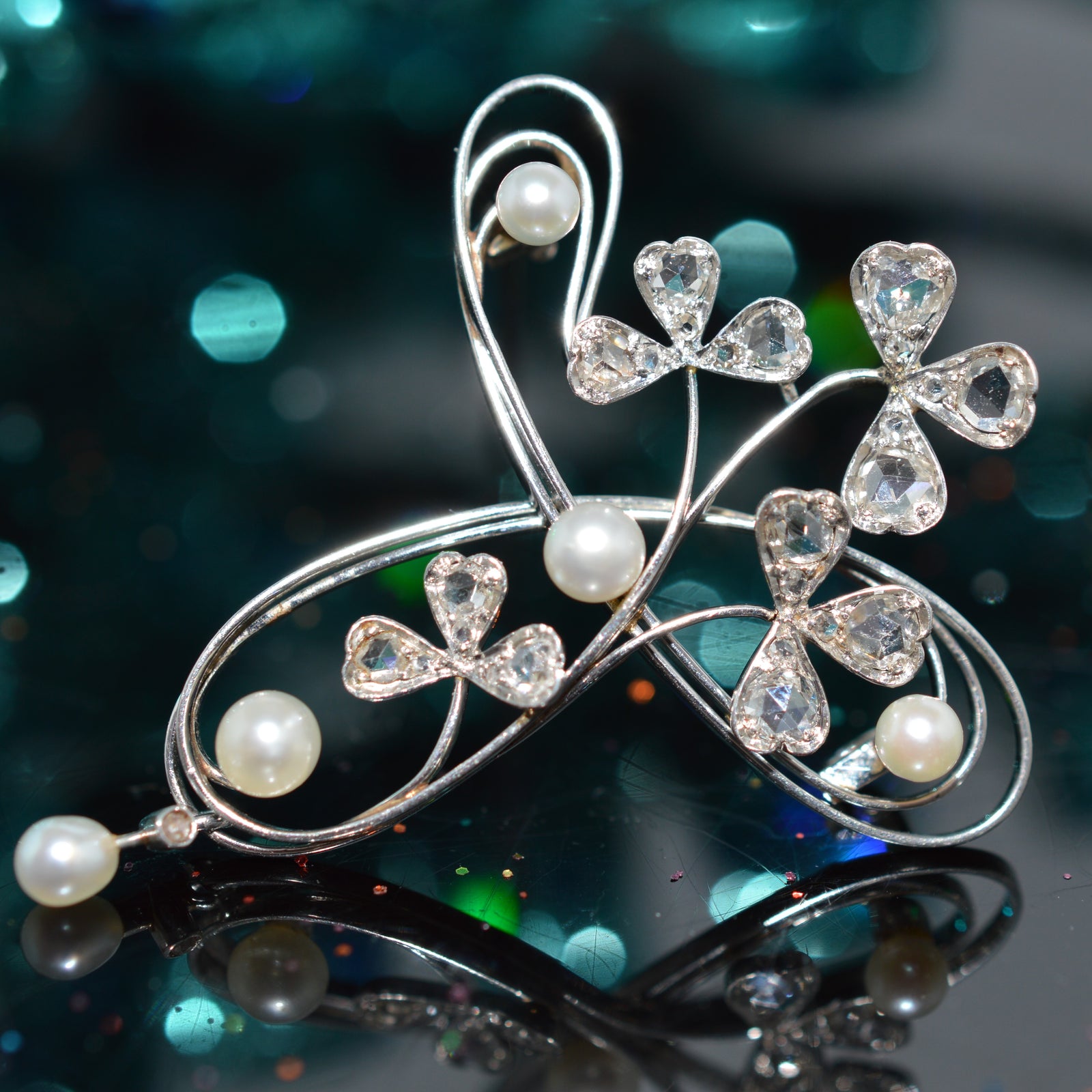 $550.00 USDPlatinum Antique Pearl And Rose Cut Diamond Brooch