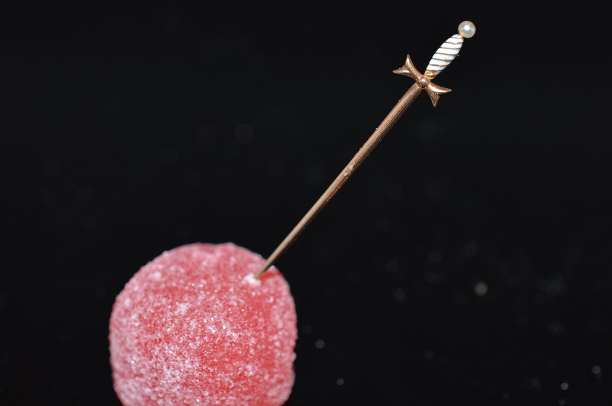 $245.00 USD14K Yellow Gold White Enamel Sword Stickpin with a Pearl