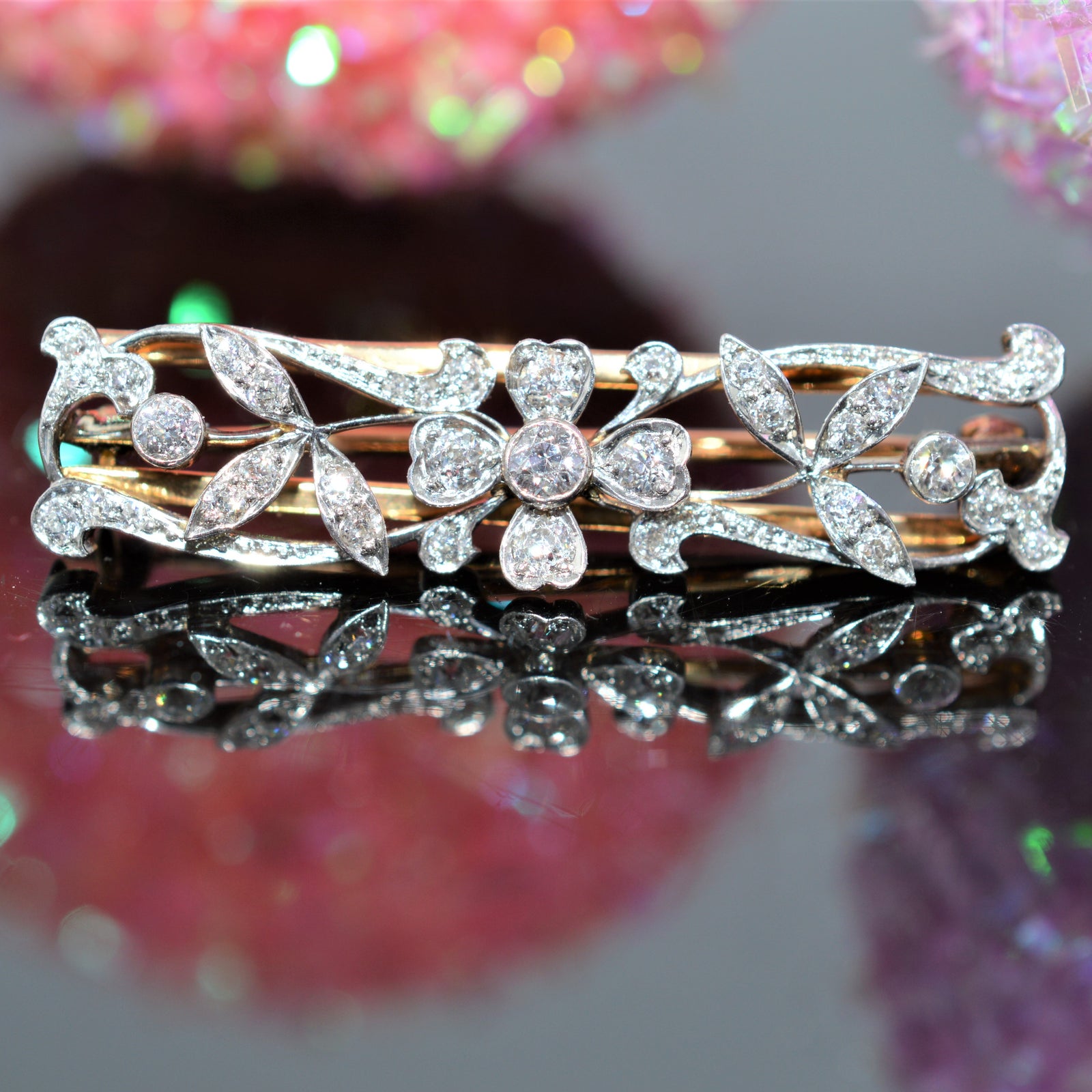 $2,295.00 USDEdwardian Platinum Topped 14K Yellow Gold Diamond Bar Pin
