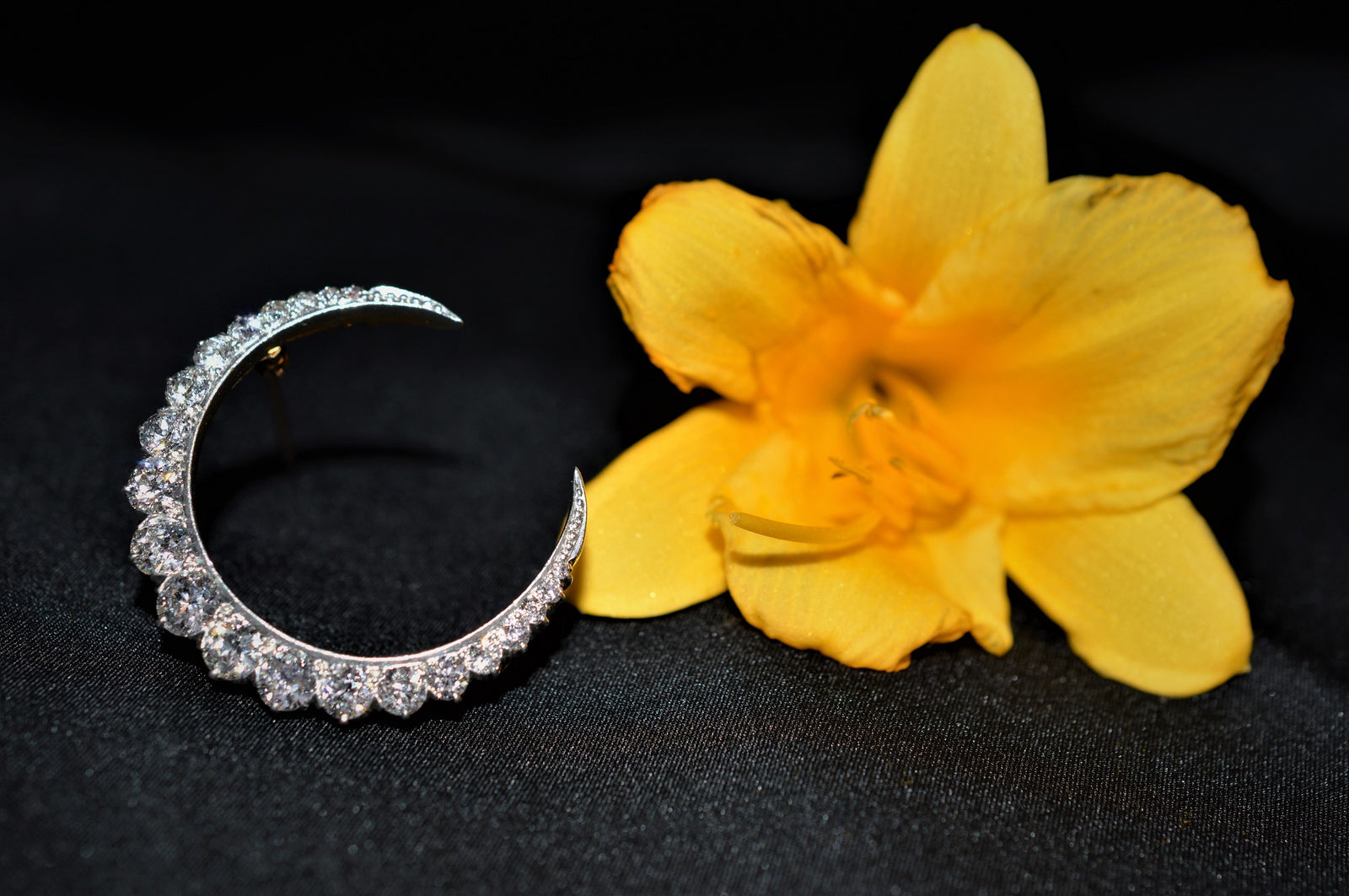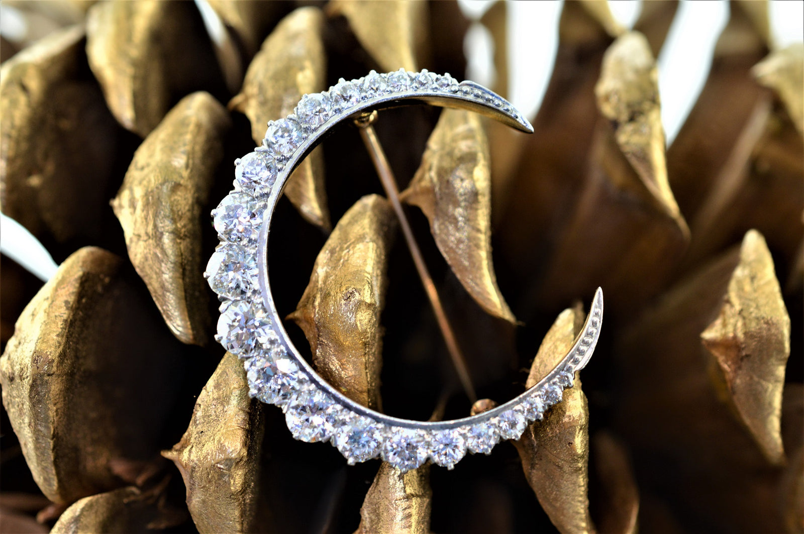 $4,950.00 USDPlatinum Topped 14K Yellow Gold Victorian Diamond Crescent Brooch