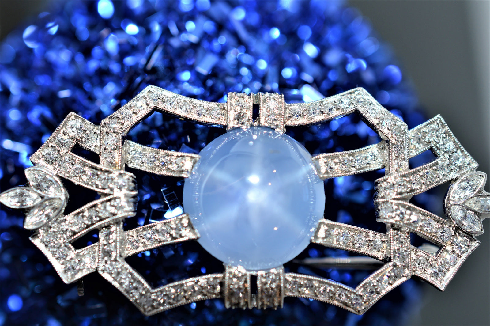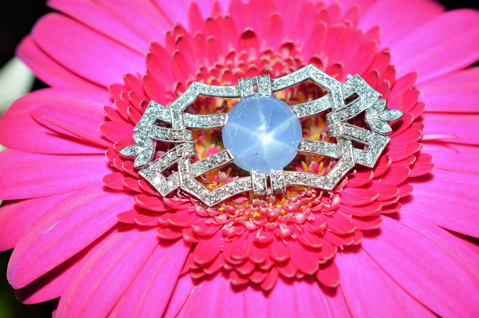 $950.00 USDPlatinum Antique Natural Blue Grey Star Sapphire Brooch