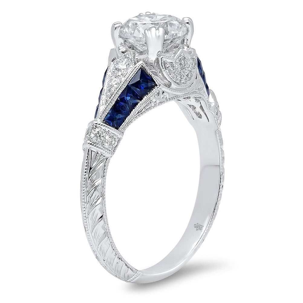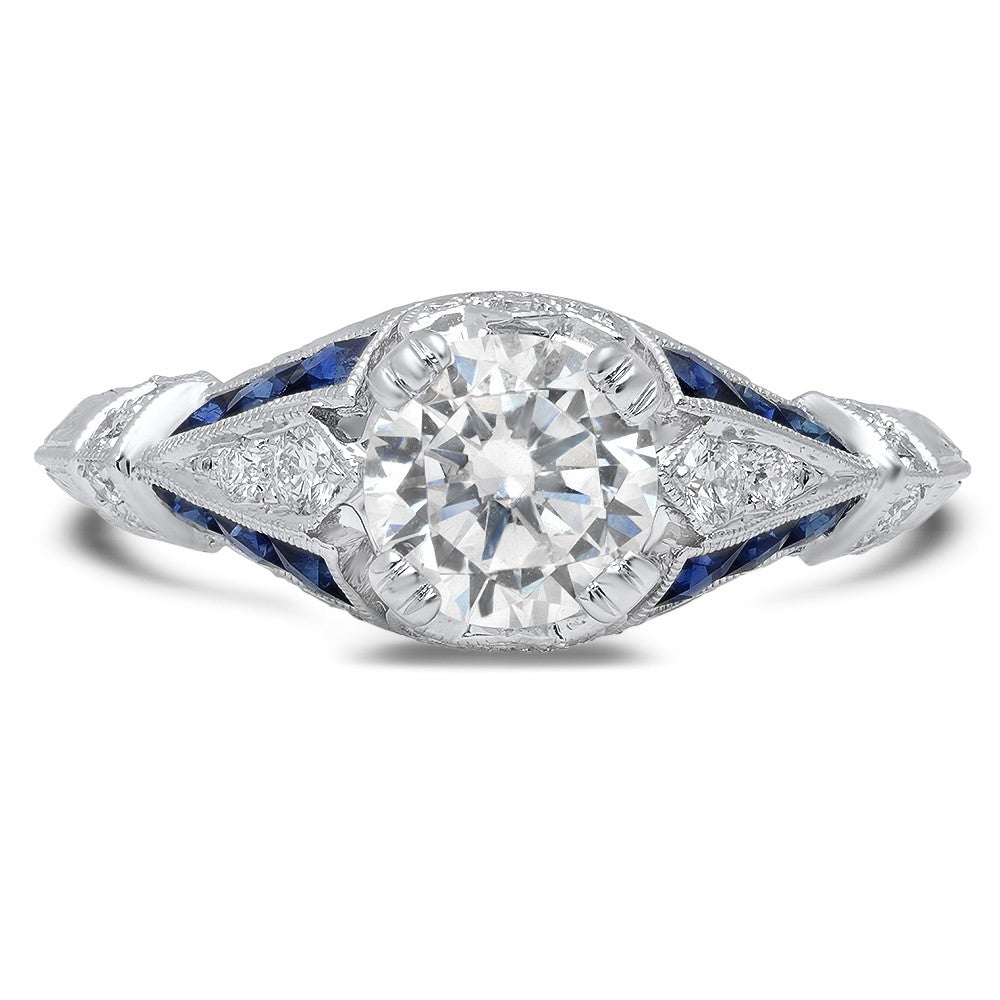 $6,000.00 USDLadies Platinum Diamond And Sapphire Semi-Mount Ring