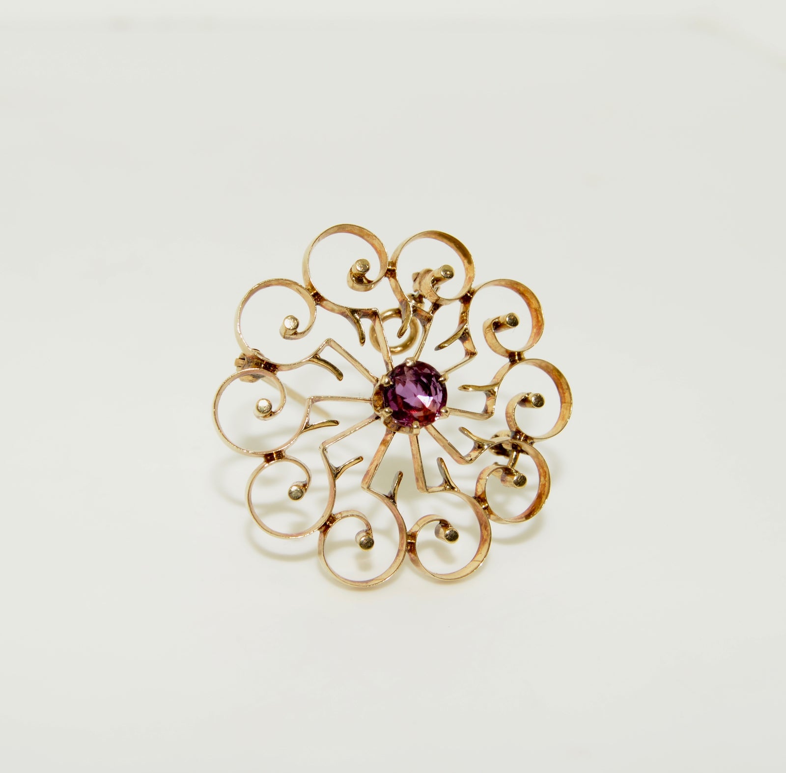 $675.00 USDAntique Gold Spiral Wire Brooch and Pendant with Ruby
