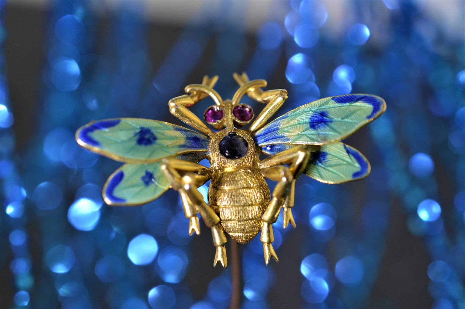 18K Yellow Gold Antique Ruby and Spinel Bee Hat Pin