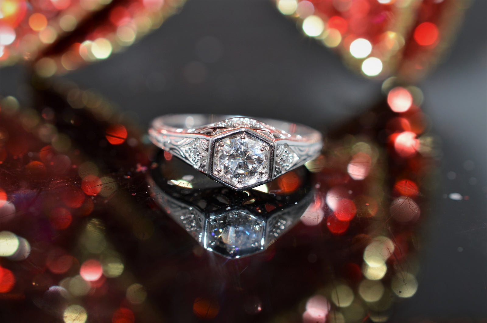 $8,500.00 USDGeometric Design White Gold Diamond Engagement Ring