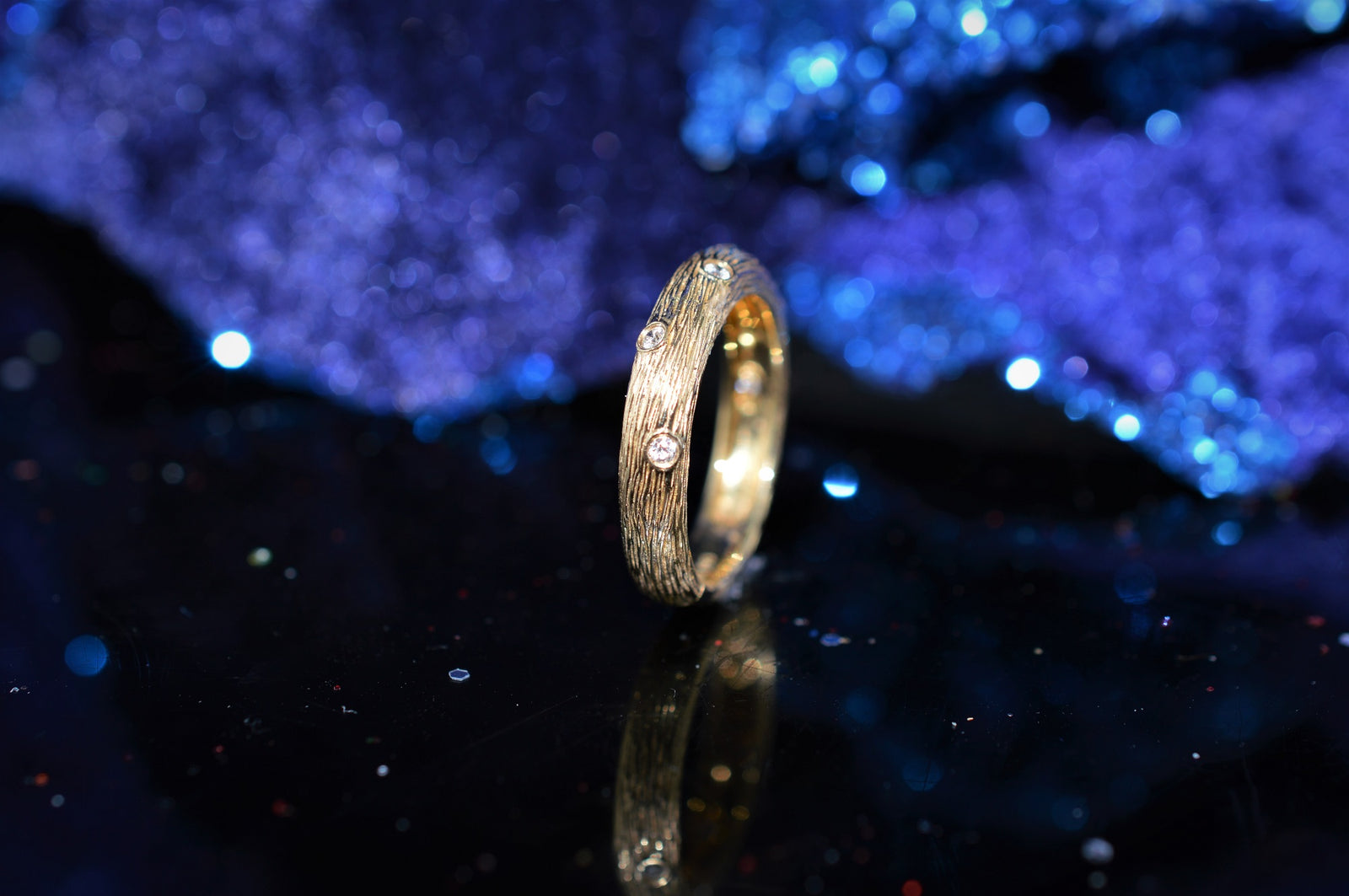 $3,000.00 USDYellow Gold and Diamond Nature Inspired Wedding Band Ring