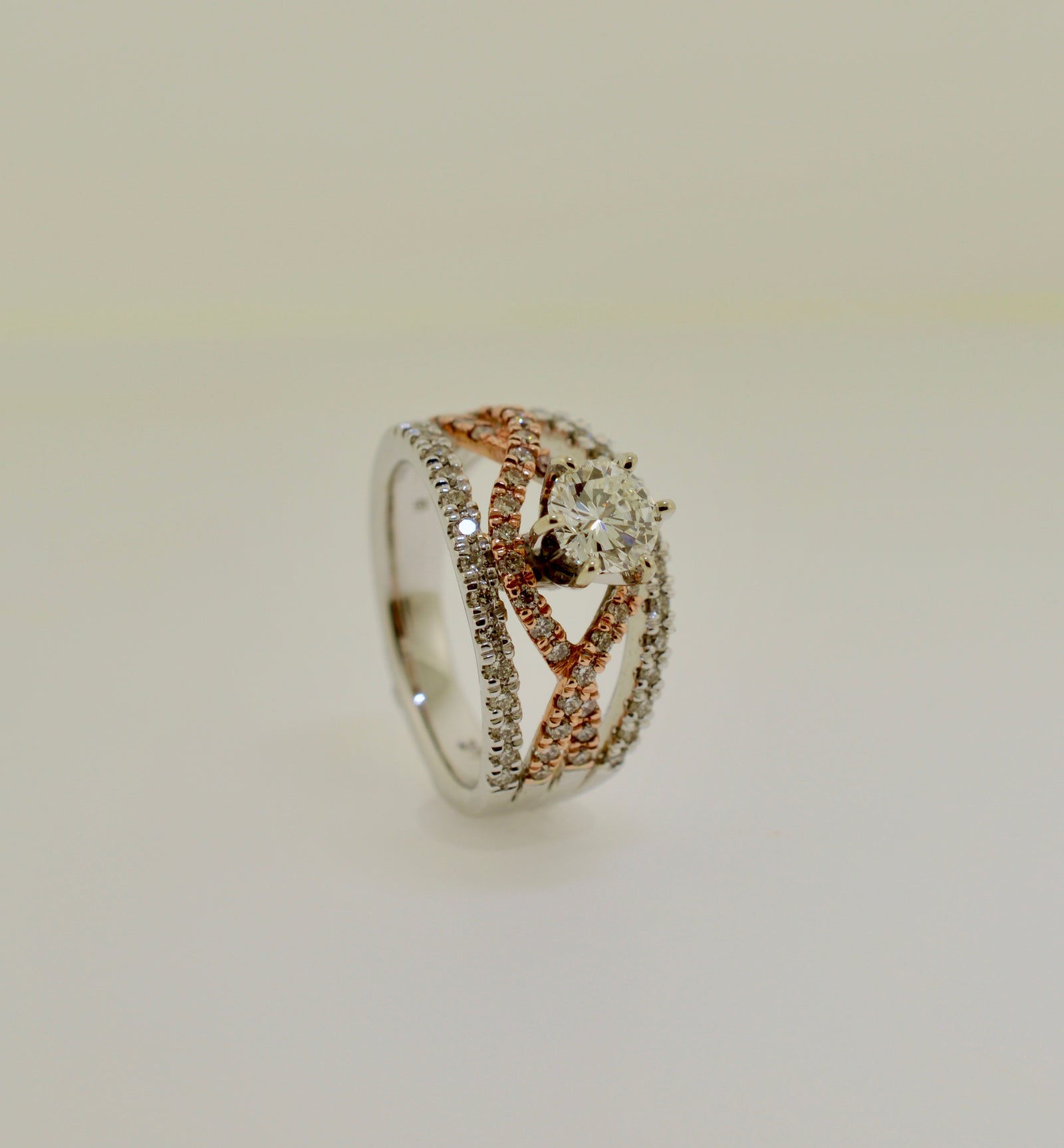 $3,900.00 USDTwo Tone Rose and White Gold Diamond Engagement Ring