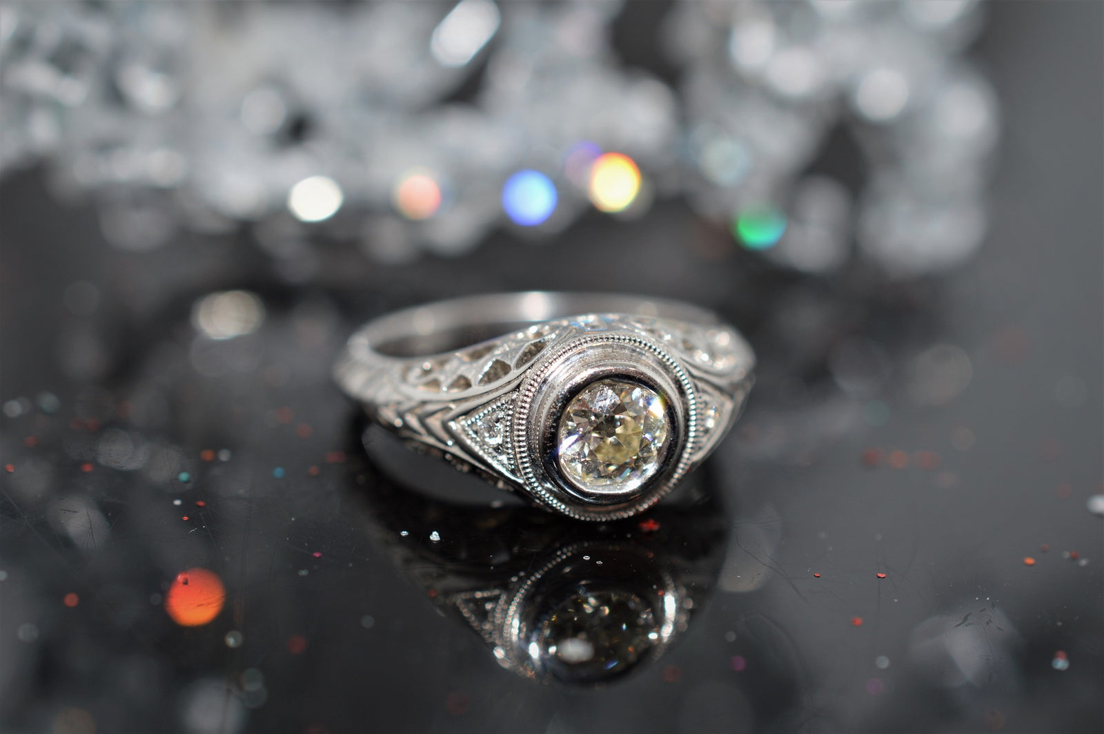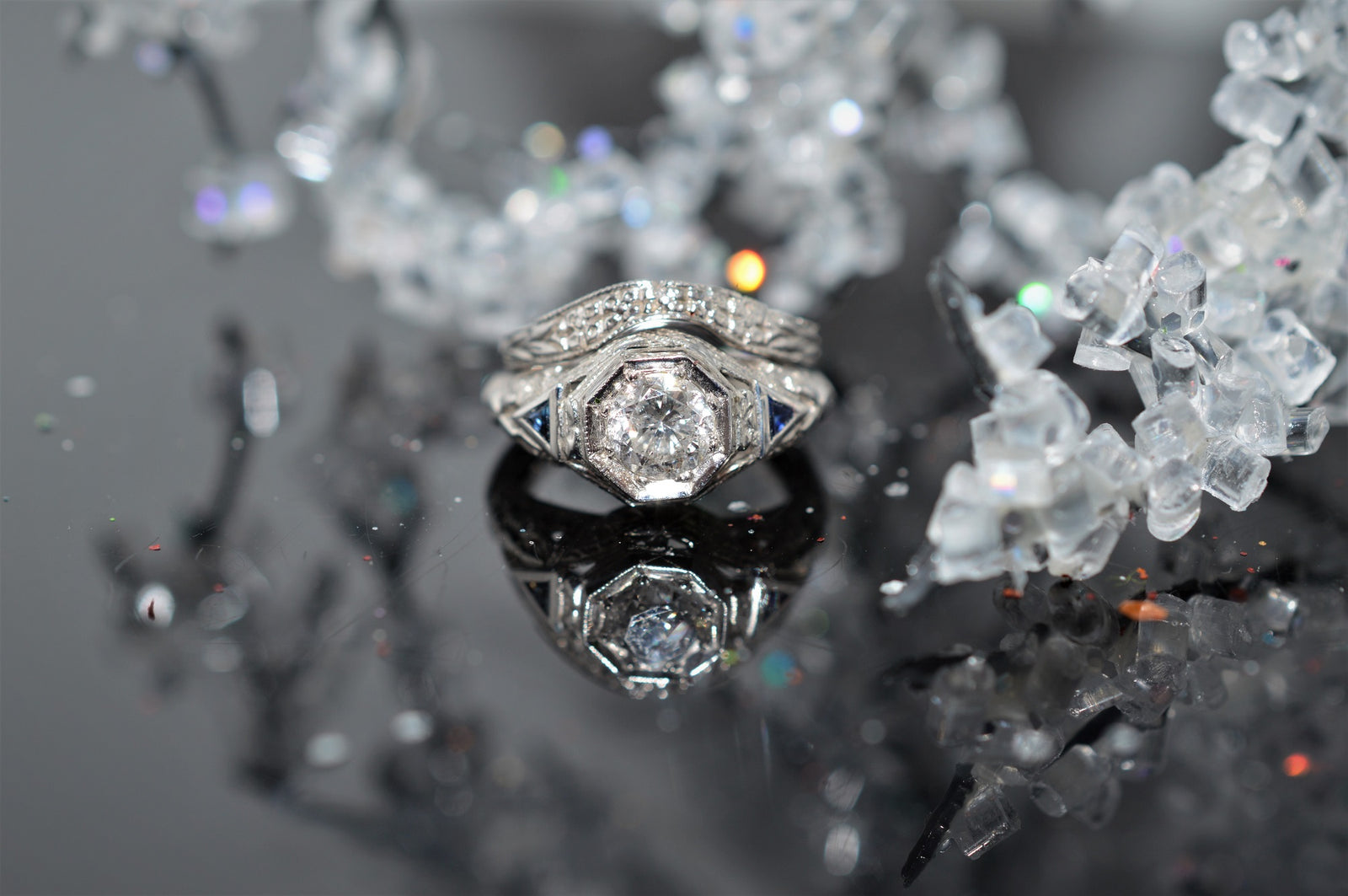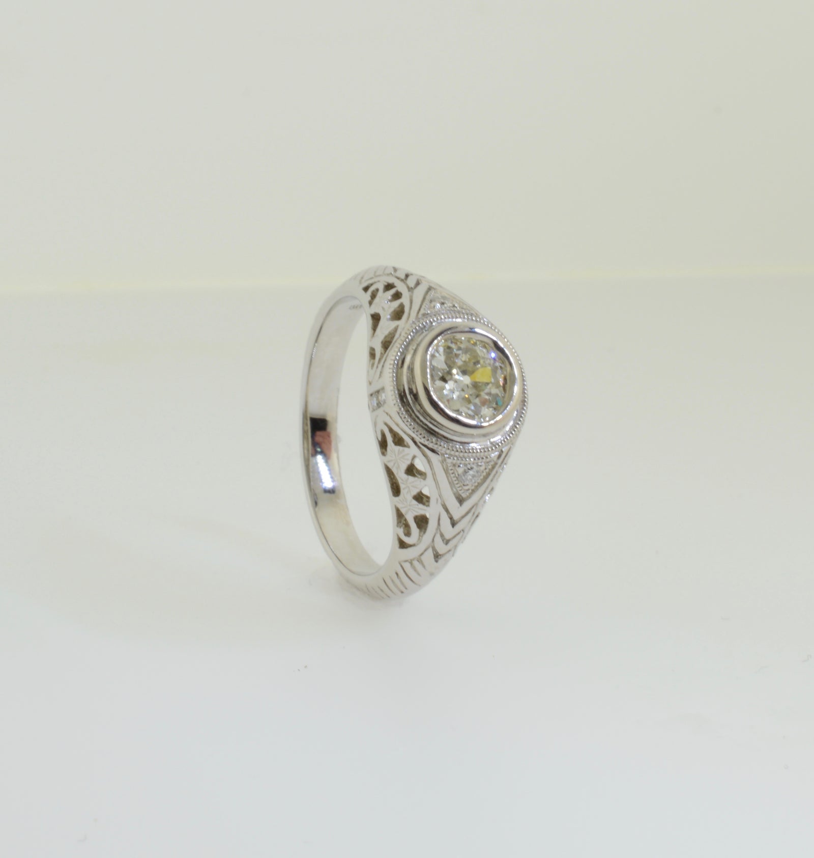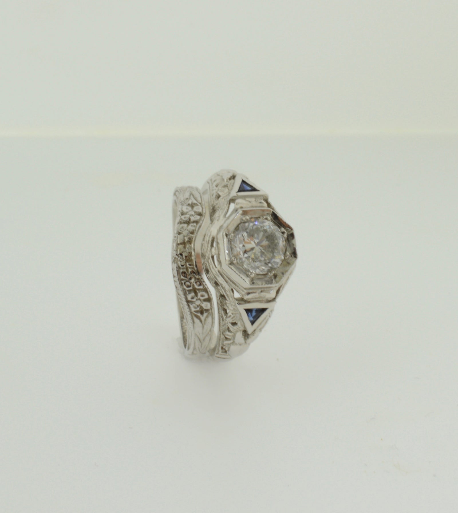 $2,500.00 USDFiligree and Sapphire Diamond White Gold Wedding Ring