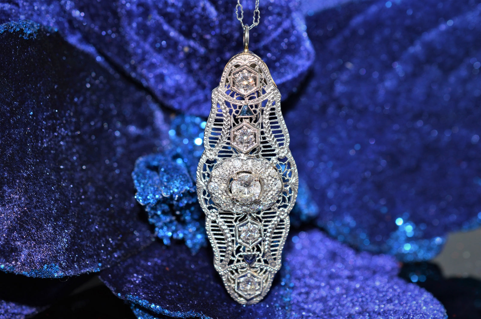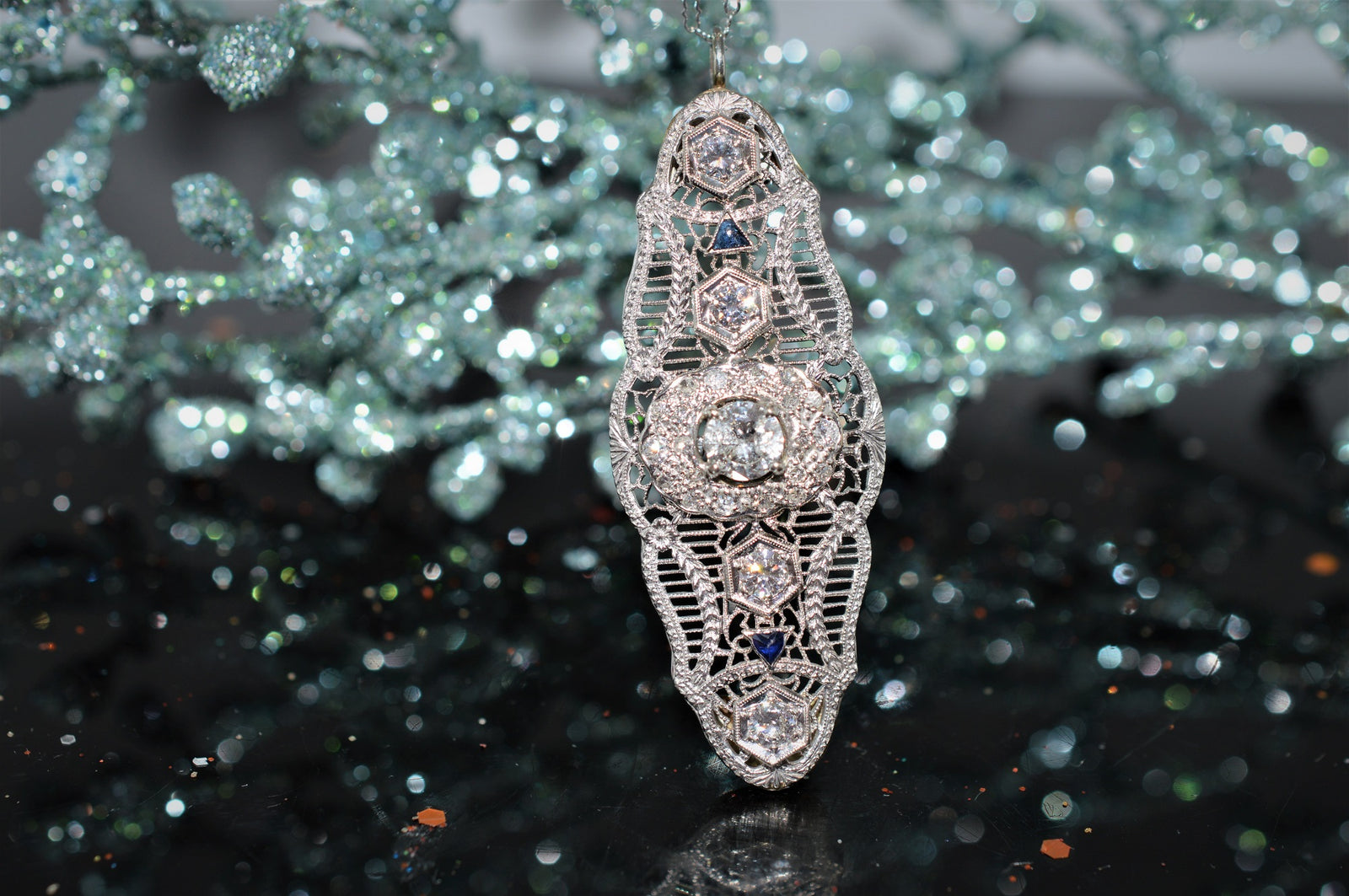 $295.00 USD14K White Gold Antique Filigree Diamond Pin/Pendant