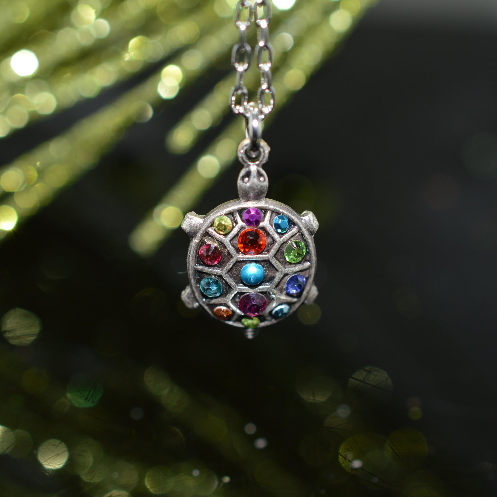 $45.00 USDAntique Silver Plated Turtle Crystal Pendant by Firefly