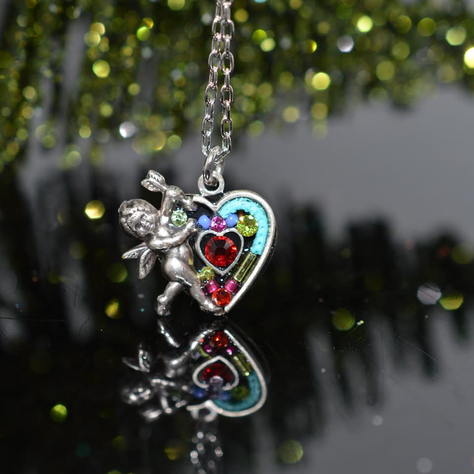 $70.00 USDAntique Silver Plated Multi-Color Crystal Cupid And Heart Pendant by Firefly