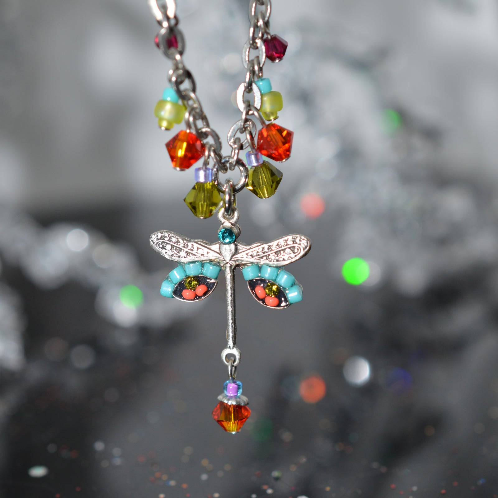 Sold OutAntique Silver Plated Dragonfly Necklace With Crystal Drops by Firefly