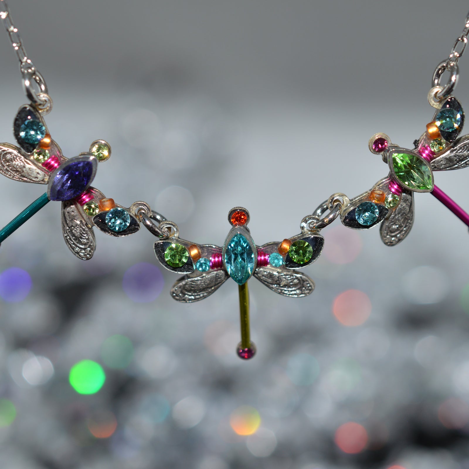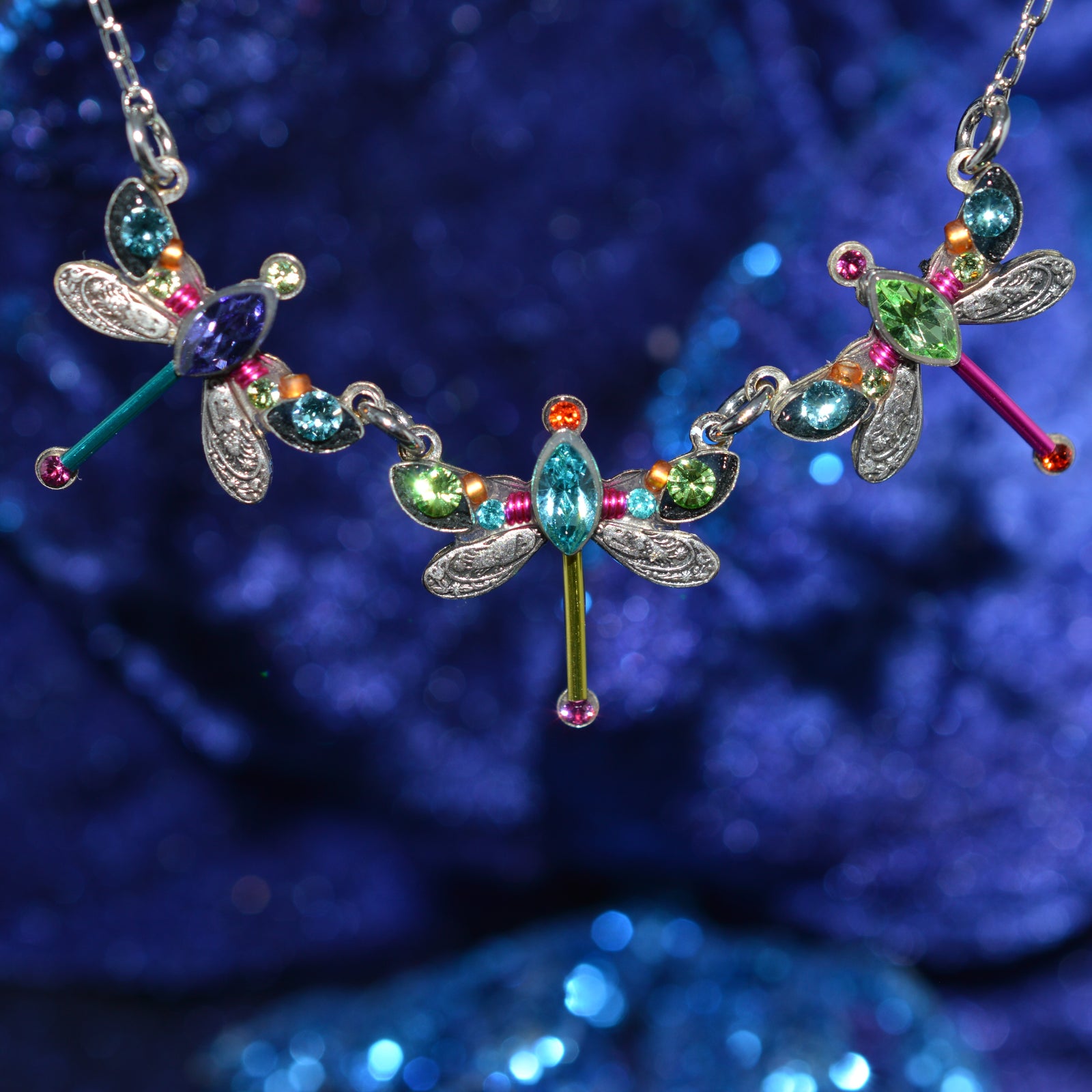 $95.00 USDAntique Silver Plated Triple Dragonfly Crystal Necklace by Firefly