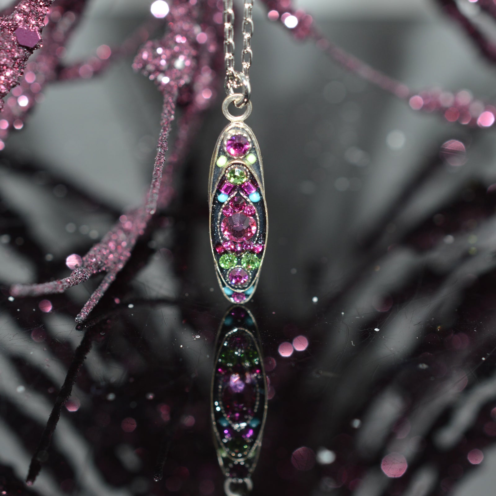 Sold OutAntique Silver Plated Rose Crystal Long Oval Pendant by Firefly