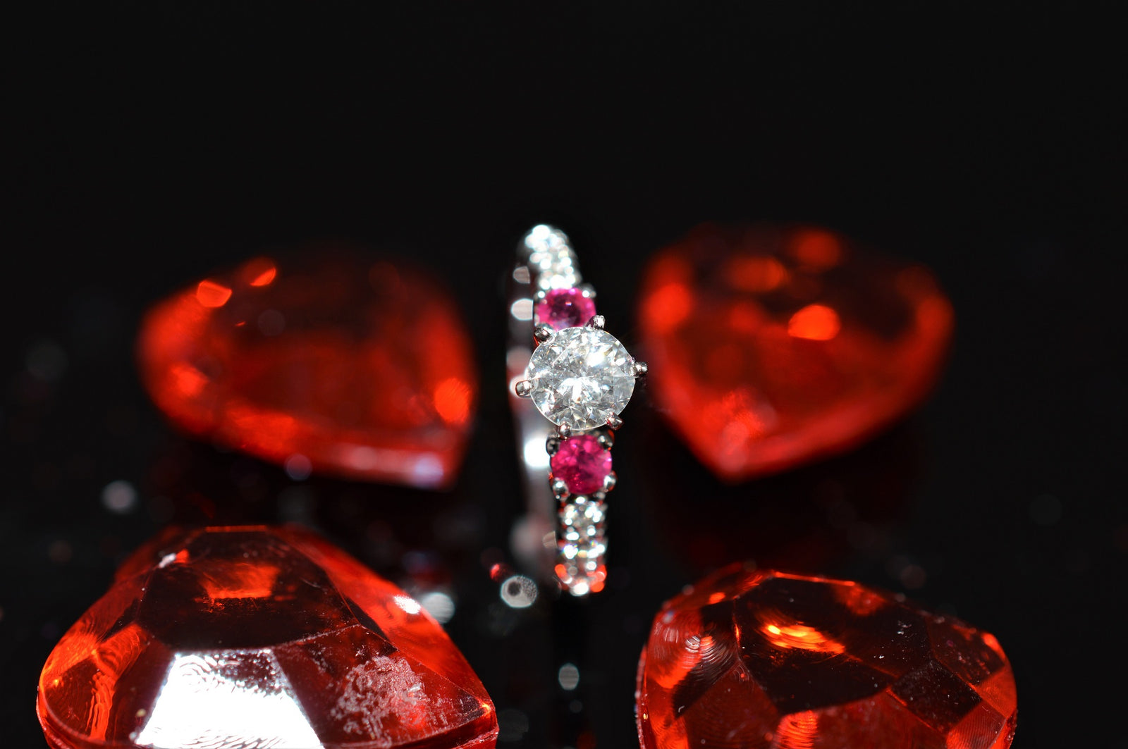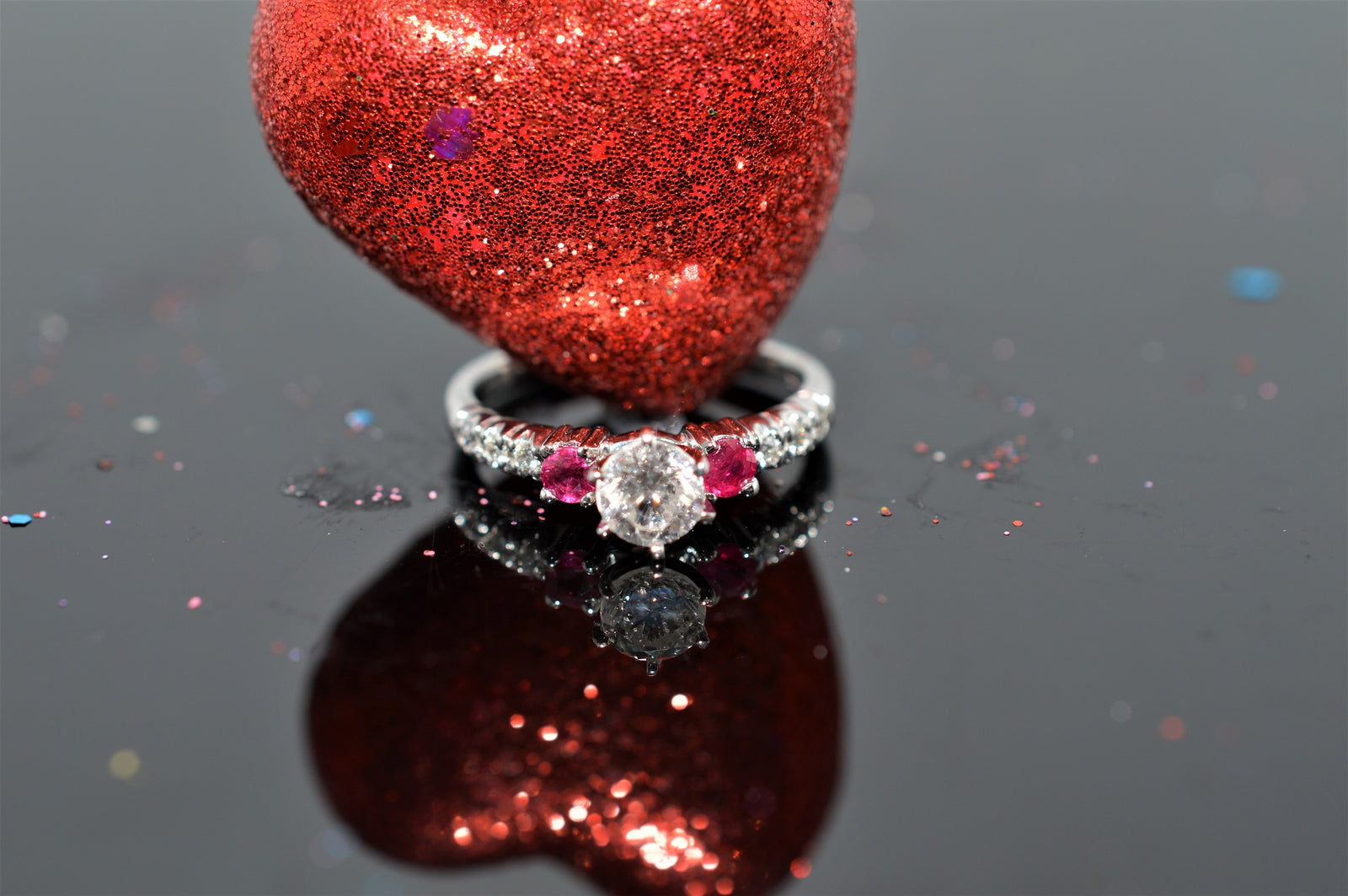 $9,995.00 USDRuby and Brilliant Cut Diamond White Gold Engagement Ring