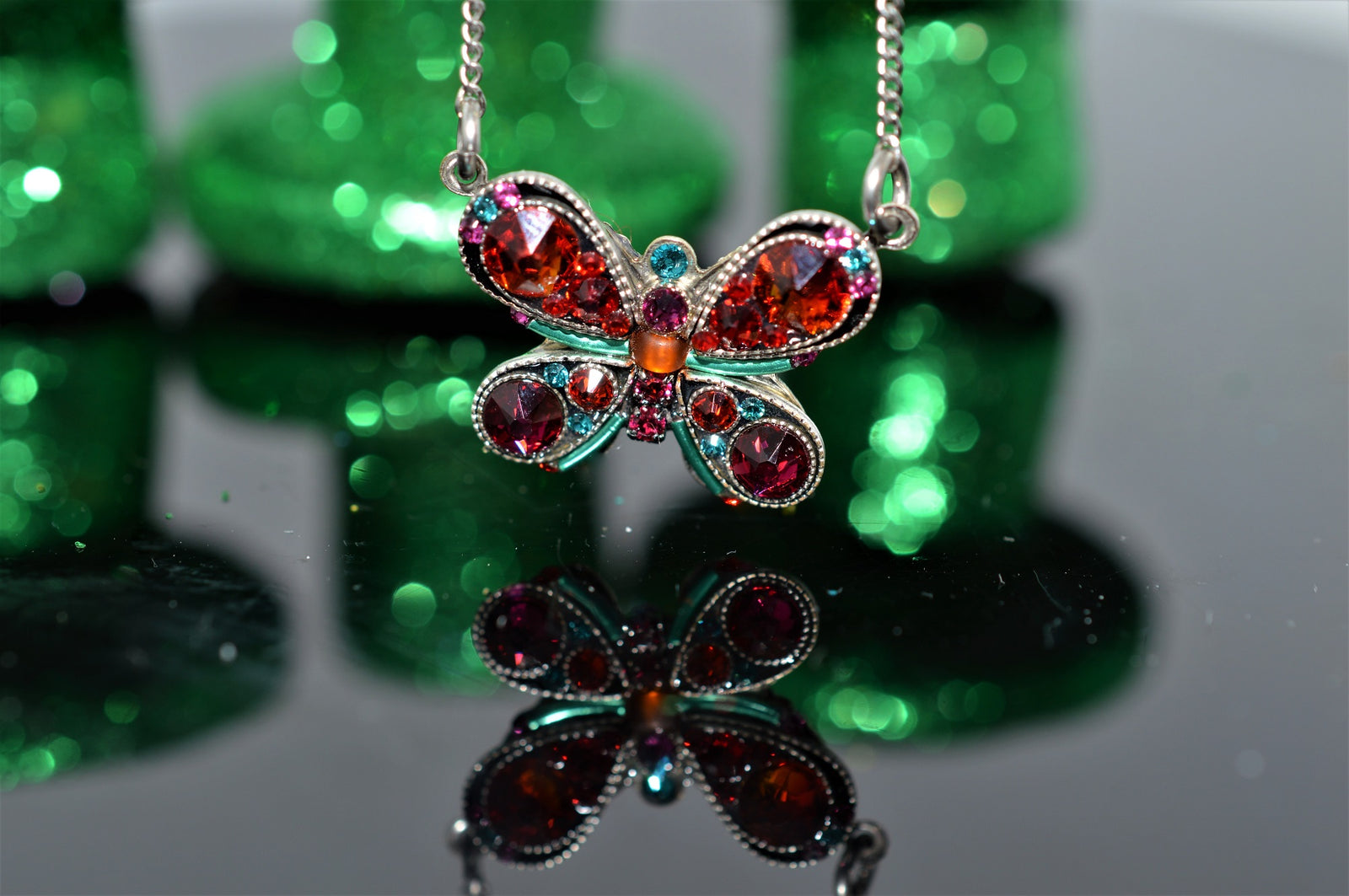 $34.95 USDPlated Antique Silver Multicolor Butterfly Pendant